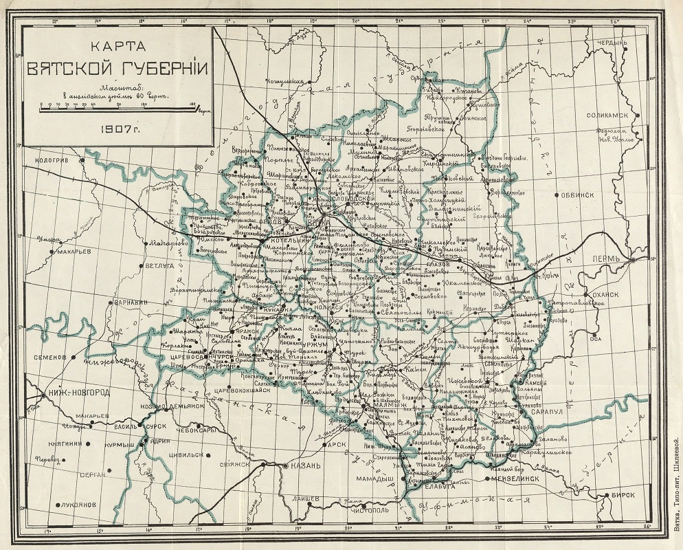 В XIX веке территория Вятской губернии была основной частью Северо-восточного земледельческого региона России, связующим звеном между центром страны, Уралом, русским Севером и Поволжьем. Она продолжала оставаться "крестьянским царством", характеризовалось низкой плотностью населения, огромными территориями, многонациональностью. Так, в 1870 году в губернии проживало" русских 1922507 душ