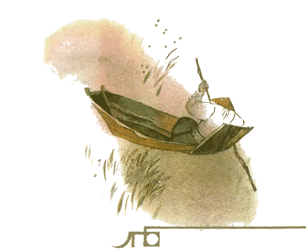 И собака побежала по следу помещика. За собакой, еле поспевая, неслась кошка. Бежали они, бежали и вдруг остановились. Путь им преградила широкая речка.