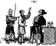 На другой день судья достал птенцов из гнезда ласточки, которое лепилось под кровлей его дома, и спрятал их в ящик. Ласточка-мать беспокойно кружилась над домом и жалобно щебетала. Тогда судья велел привести Гун Ечана и спросил его: