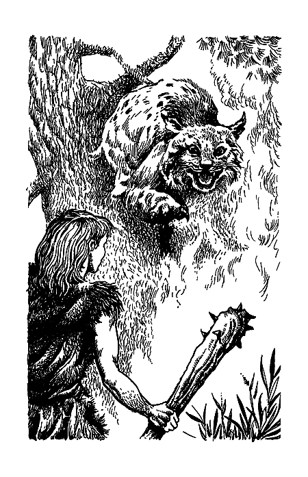 Этой зимой Лис очень подружился с Большим Зубром. Огромный, косматый Большой Зубр совершил много подвигов. Ударом кулака он убивал оленя, с кремневым ножом в руках однажды справился с медведем. Преследуя раненого лося, переплыл реку, густо покрытую весенними льдинами. Но охотился он в одиночку: не любил делиться добычей с соседями. Даже жена и сын его ели только после того, как он наедался. Жена Большого Зубра была из племени Оленей, жившего в северных лесах. Робкая, как и все Олени, она никогда не поднимала глаз, вечно возилась около своей хижины, даже за ягодами ходила неохотно.