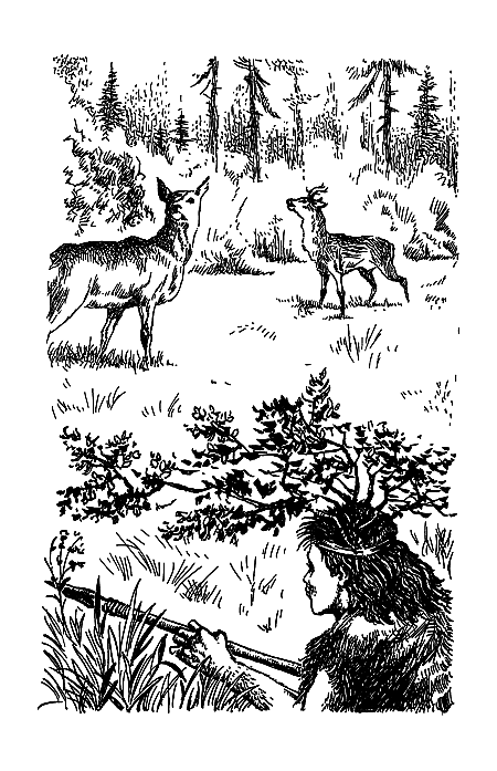 Мальчик замер, боясь выдать себя малейшим движением. Если он не убьет косулю одним ударом, она убежит и может унести с собой копье Орлика, а второго у него нет. Он лежал, выжидая, когда дичь подойдет поближе, а солнце все ниже опускалось к вершинам