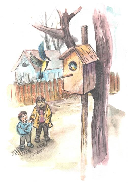 Каждое утро Боря первым делом выбегает на улицу и смотрит, не вылетит ли из летка-отверстия птица. Но птиц нет. Скворцы пролетают мимо. Наверное, у них уже есть своё обжитое жильё. Так проходит неделя. Однажды папа заходит со двора и сообщает новость: