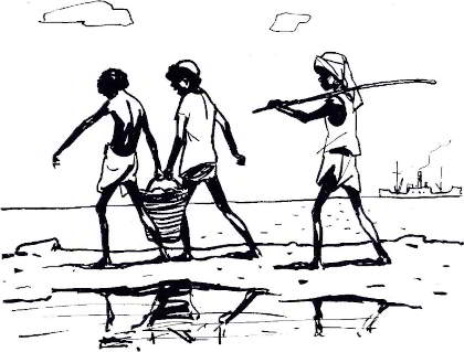 Добрый Мукфи пожалел его и взял к себе в помощники. Занимались они ловлей крабов в прибрежных скалах, а в сезон собирали с морского дна круглых, усыпанных иглами ёжиков, в скорлупках которых была съедобная икра, и срывали со скал чёрные блестящие мидии.