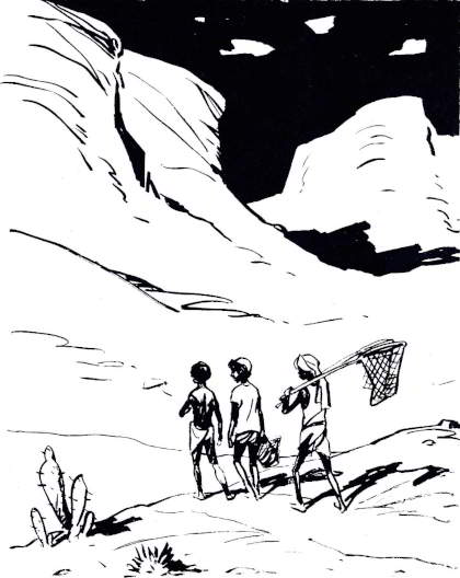У затаивших дыхание мальчиков колотилось сердце. Вот и С удивительной быстротой, вытянувшись в воздухе, как стрела, ящерица спрыгнула с камня и в мгновение ока исчезла из виду.