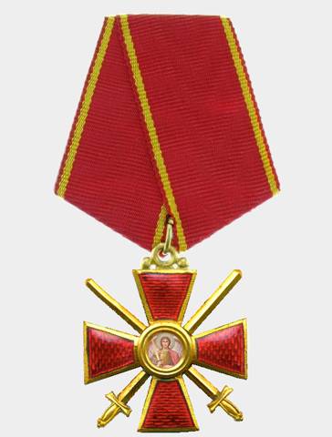 для второй степени орденский крест с медальоном, изображающим святого, носимый на шее на орденской ленте;