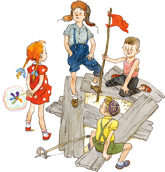 Пришла Женя во двор, а там мальчики играют в папанинцев: сидят на старых досках, и в песок воткнута палка.