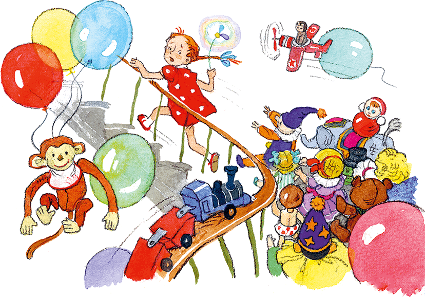 И в тот же миг откуда ни возьмись со всех сторон повалили к Жене игрушки.