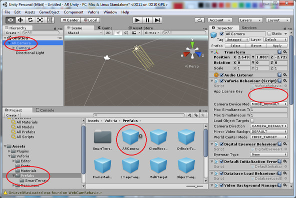 Получите лицензионный ключ для приложения на сайте Vuforia и вставьте его в поле App Lisense Key.