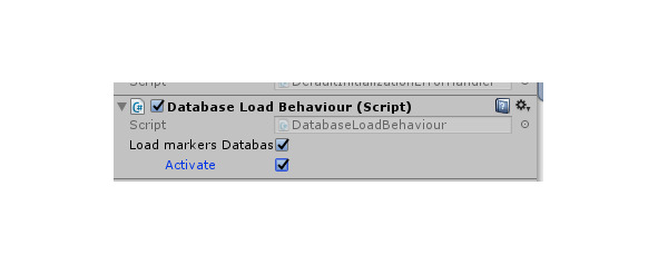 Активируем базу маркеров для камеры ARCamera. Для этого в свойствах ARCamera в окне Inspector в разделе Dataset Load Behaviour выберем Load markers Database и Activate.
