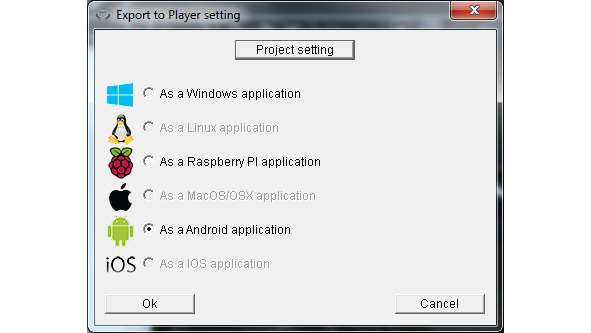 Соберем проект в Android приложение. Для этого в меню Export to Openspace3D player выберем As an Android Application.