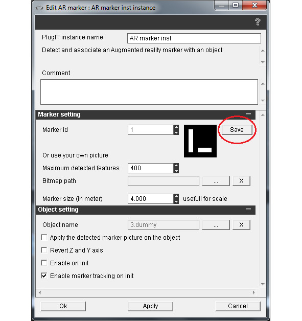 В свойствах экземпляра AR marker, в качестве маркера можно установить реперный маркер, сохранив его для распечатывания.