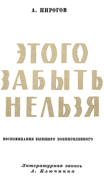 Андрей Пирогов ЭТОГО ЗАБЫТЬ НЕЛЬЗЯ Воспоминания бывшего военнопленного