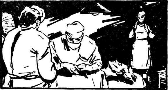 Хирург поворачивается к ассистенту, к сестрам, обступившим стол.