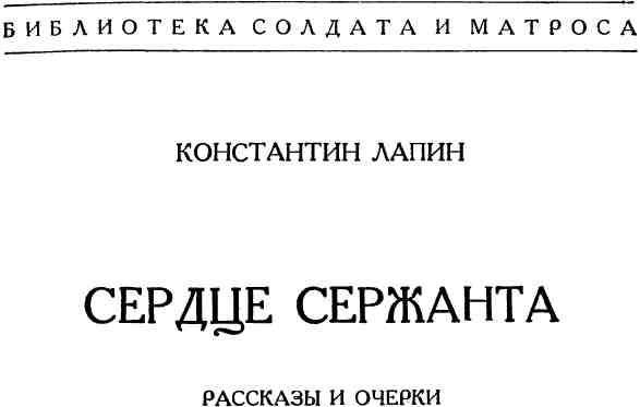 Сборник «Сердце сержанта» рассказывает о великом сердце советского человека, которое до последнего удара бьется для своей Отчизны. Читатель узнает, как воевали и как работают, как любят и дружат замечательные люди, подлинные герои нашего времени.