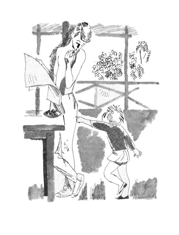 А ты зачем маленького поросёнка объедаешь? сердито, чтобы скрыть смущение, пробурчала Зойка и с блюдечком в руках побежала в сад.