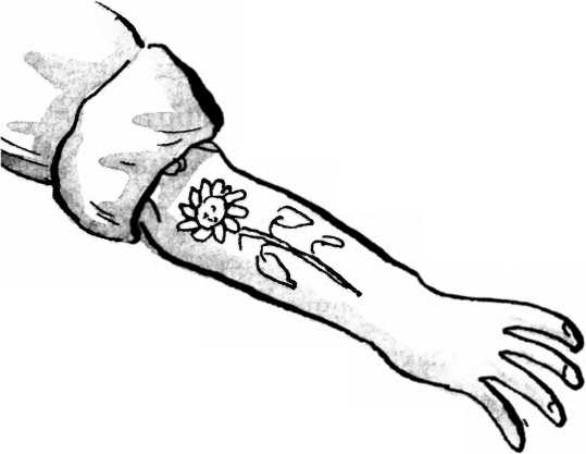 мрачной, как может показаться (хотя на ней и виднелись следы от шин и всё такое), потому что была сделана в память не о трагическом событии, а о вкусном лакомстве. (То же самое, как если бы вы, например, сделали татуировку с кусочком пиццы если вы, конечно, любите пиццу). Но через несколько недель после того, как в семье появился Лучик, она набила на руке большую татуировку с подсолнухом, раскрытым навстречу солнечным лучам.