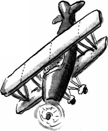 Гудел самолёт точнее, ярко-жёлтый биплан. Он с шумом нёсся прямо на «Весёлую пляску»! Ну, честно говоря, не совсем уж прямо он крутился в воздухе, словно штопор, а мотор у него трещал, но самолёт решительно приближался.
