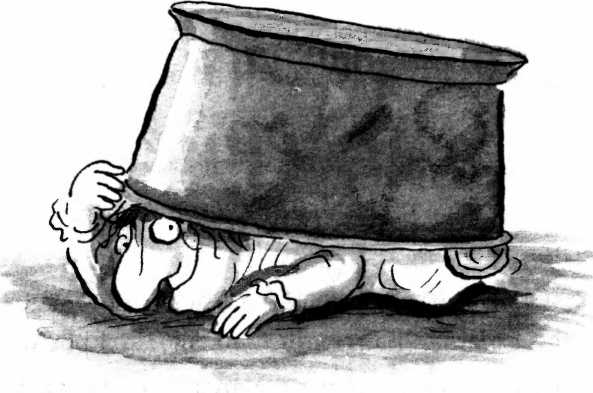 Мистер Ворчун заскулил и отбросил таз. И не успели бы вы воскликнуть: «Победа!», как миссис Ворчунья схватила таз и поспешно под него залезла. Последней она спрятала голову, словно черепаха в панцирь.