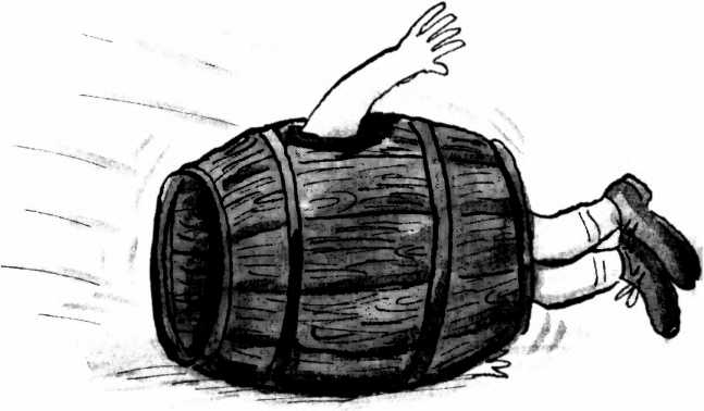 ОЗО потерял равновесие и рухнул на палубу, покатился в своей бочке навстречу Пальчику, развил неплохую скорость, а потом врезался в мистера Ворчуна сзади, отчего тот упал на спину и закряхтел.