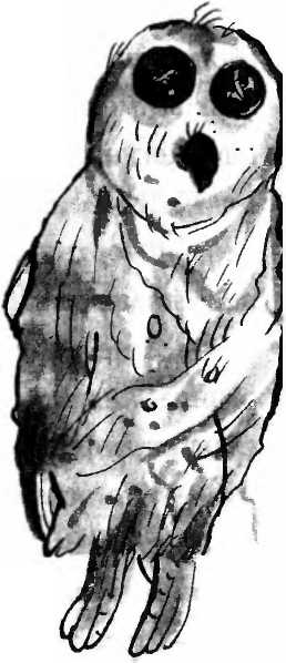 Мистер Ворчун-старший покопался под верстаком и вытащил на свет громадную игрушечную сову. Видно было, что её очень любили и часто обнимали. Она вся истрепалась и испачкалась. Сова с глазками-пуговками была сшита из старого жилета. Мистер Ворчун-старший прижал её к груди.
