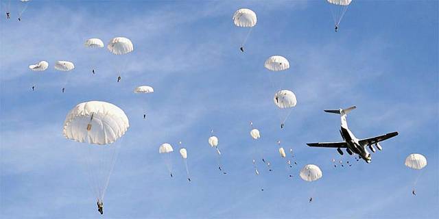 После того, как открывали двери, мы, в количестве целой роты, в два потока, меньше чем за минуту покидали самолёт. Небо расцветало белыми куполами. Мы видели, как наши «птички» улетают вдаль