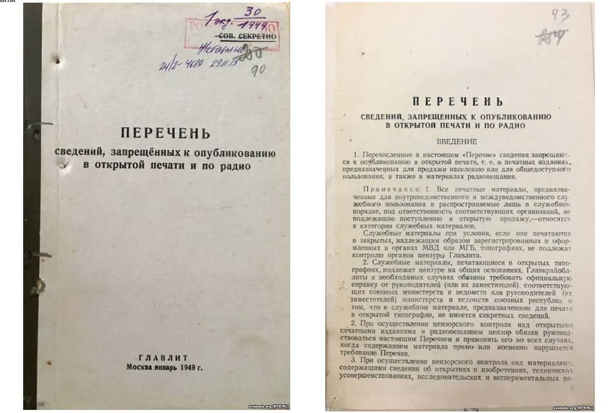 Перечень сведений запрещенных к опубликованию в СССР (январь 1949 года)