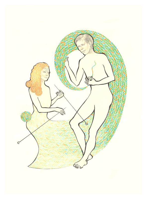 Она испустила короткий выдох, опустила глаза и продолжила вязать. В комнате все затихло. Эрра почувствовал, как нить натянулась и завибрировала, он все еще держал ее в руке, и только тут он заметил у ног красавицы клубок из нити такого же цвета, как и та, что была у него в руке. Струящиеся локоны красавицы спускались ниже спины по платью до пола и переплетались с золотой пряжей.