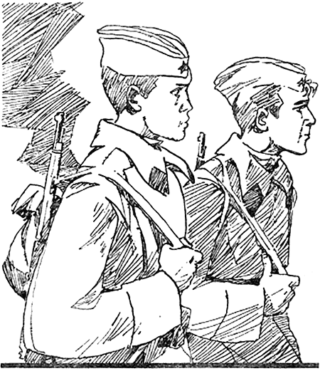 Не могли они, комсомольцы, поступить иначе, потому что понимали, что несет с собой фашизм нашему народу. Позволить врагам топтать родную землю? Превратить советских людей в рабов? Никогда! И вся наша молодежь вместе со взрослыми по зову великой партии Ленина встала на защиту своей Отчизны, каждый на своем посту. Одни на предприятиях у станков, другие на колхозных и совхозных полях.