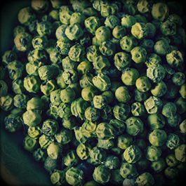 Green pepper. These green peppercorns are unripe berries of black pepper. It has a piquant fresh aroma and pleasant pungency. It goes well when added in sauces, marinades, pickles and sausages. It harmonizes well with various kinds of vegetables, bay leaf, avocado, beef and veal, butter, poultry (chicken, duck, turkey), wild game (especially venison), garlic, mustard, parsley, pork, sage, various kinds of salads (as dressing seasoning ), fish (especially salmon), seafood (especially prawns).