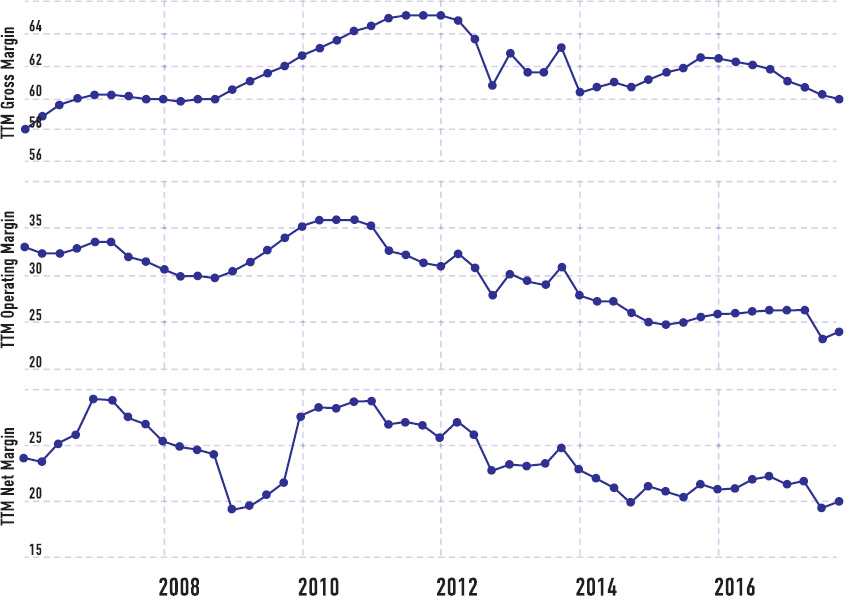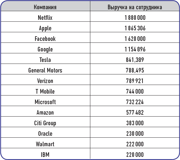 У цифровых лидеров часто лучшие доходы на одного сотрудника, что является ключевым показателем эффективности работы. Они на порядок превосходят некоторых хорошо известных «носорогов». Операционная маржа Google, например, редко составляла менее 20 %, что делает компанию более эффективной, чем 85 % корпораций мира[46].