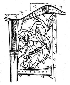 Западной Европе светские, мирские мотивы глубоко проникли в искусство. Не только во все виды прикладного искусства. На полях манускриптов, в утонченных изображениях начальных букв глав церковных книг - инициалах можно часто, как и на этом рисунке, увидеть гибких гимнастов или танцовщиц. Эта девушка, изогнувшаяся в