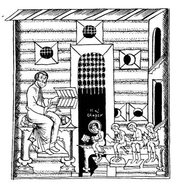 Художник XVII века, опираясь на впечатления своего времени, изобразил школу, в которой обучался мальчик Андрей (Антоний после пострижения в монахи). При условности деталей, заимствованных «изографом» из декора богатых хором, важно точное изображение «волоковых» окон - окошек, врезанных в два смежных бревна, закрывавшихся задвижкой-волоком. Разумеется, отдельных школьных зданий не строили ни в XVI веке, когда жил герой житийной повести, ни раньше, и роль школьного здания играла пристройка (прируб) к церкви или часть большой избы.