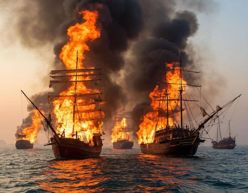 К вечеру все игры в догонялки закончились. Две большие джонки пылали, две маленькие ушли на дно, остальные подняли белые флаги. Их взяли на буксир. Рука не поднялась топить крепкие корабли.