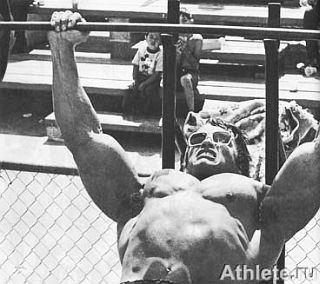 Я часто устраивал "тяжелые дни" для тренировки грудной клетки по воскресеньям на Винус-Бич. Поскольку вокруг было много людей, наблюдавших за мной, это придавало дополнительную энергию для работы со штангой весом 450 фунтов.
