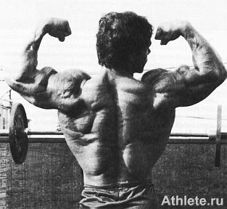 Многие культуристы забывают о том, что передние дельтовидные мышцы имеют важное значение в позах со спины. Франко Коломбодемонстрирует, что передние головки дельтовидных мышц могут быть видны при демонстрации бицепсов сзади.