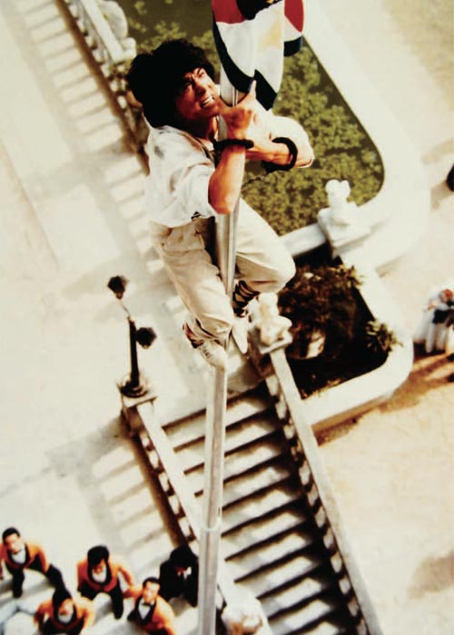 Самая важная серия эпизодов с трюками в фильме относится к той части повествования, где я, убегая по улице от погони, взбираюсь на флагшток и прыгаю с него на башню, а затем срываюсь прямиком вниз и падаю наземь. В ходе многочисленных размышлений и разговоров на эту тему стало ясно, что это нельзя снимать с помощью дублеров. Если нам нужен этот эпизод необходима настоящая игра актера. Разумеется, это означало одно: я все должен сделать сам.