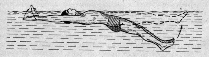 Рис. 2. Достаточно выставить из воды пальцы или кисти рук, как ноги всплывут к поверхности и тело примет устойчивое положение на спине.