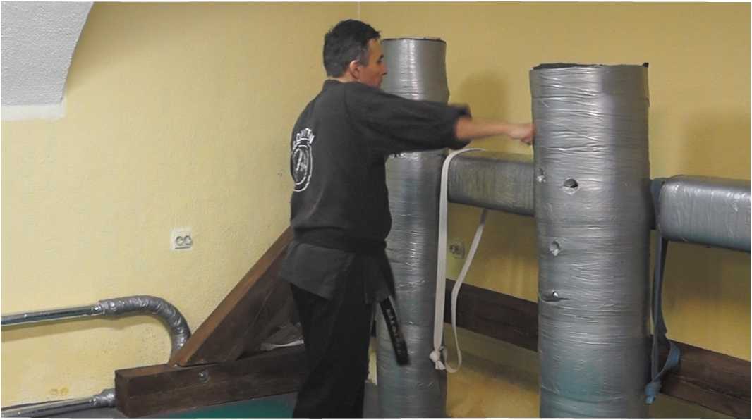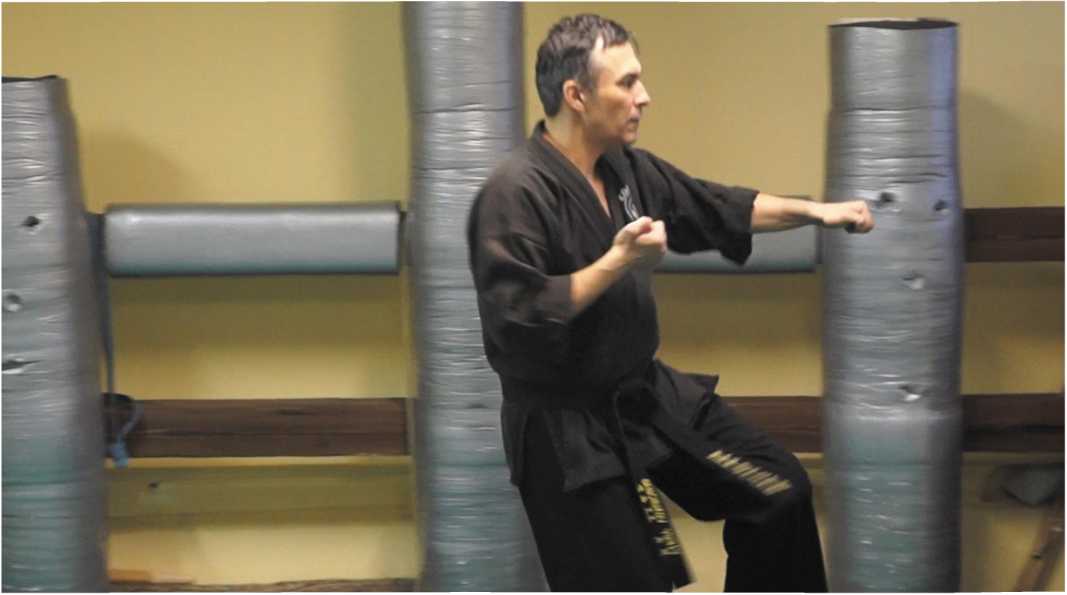 практически ничего не передастся. Простое удержание корпуса в напряжении, которое мы видим в большинстве японских боевых систем для передачи усилия неэффективно. Крик во время удара, который якобы позволяет высвободить «энергию Ки» и сделать удар сильнее, на самом деле действует иначе. При крике происходит резкое сокращение мышц брюшного пресса, то есть небольшое, но резкое сгибание корпуса вперед. Этой небольшой, но своевременной работы корпусом оказывается вполне достаточно для того, чтобы в этот момент возникла жесткая структура, передающая усилие с ноги на руку. Поэтому корпус также обязательно должен совершать и свое усилие - прежде всего, дожим удара брюшным прессом. Эффект от него, конечно, меньше, чем от ноги, но без него не возникнет единое усилие нога-корпус, которое должно присоединиться к усилию разгибающейся руки и «подпереть» его.
