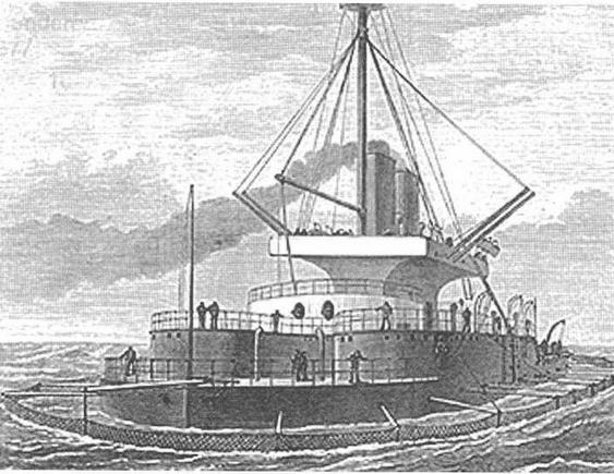 Что касается боковой остойчивости Thunderer то о ней не может существовать никакого вопроса. О способности же черпнуть носом, следует заметить, что наши безрангоутные мониторы, по крайней мере на сколько они представляются Thunderer имеют весьма небольшое водоизмещение для своей части расположенной впереди миделевого сечения, и противники этого нового рода боевых судов настаивают, что когда их нос погрузится в набегающую, умеренных размеров атлантическую волну, то передние башни окажутся под водой прежде чем судовой корпус освободиться от этой тяжести действующей на нос сверху вниз, вторая и третья волна пойдет за первой и судно пойдет ко дну носом вперед. Почти бесполезно говорить что самые тщательные вычисления в Адмиралтействе указывают что ничего подобного опасаться не стоит.