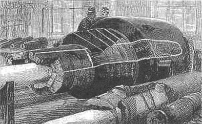 Вторая цель, т.е. движение станка по платформе для придвигания и отодвигания орудия, достигается тем, что под орудием расположен гидравлический цилиндр с поршнем, причем последний соединен со станком прочным железным кронштейном; следовательно, одновременно с движением поршня будет двигаться и станок. Но, вместе с этим, такое устройство имеет еще другое назначение.