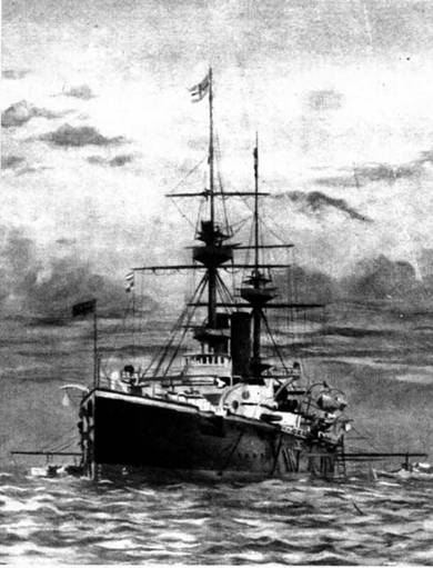 Текст: 1-я стр. Броненосец "Магнефишент" (С открытки того времени)