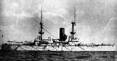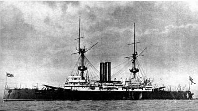 Английские броненосцы предшественники маджестиков": Роял Оук" типа Роял Соверен" (вверху), Центурион (в центре) и Ринаун"