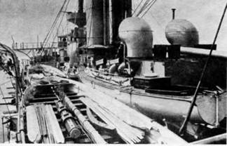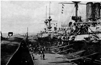 Будни английского флота; на шкафуте одного из английских броненосцев (2 фото вверху) и во время погрузки угля