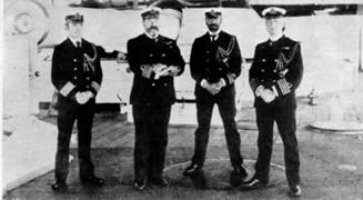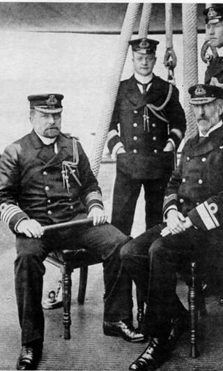 Командование (2 фото вверху) и флагман Флота Канала броненосец "Магнефишент". 1901 г.