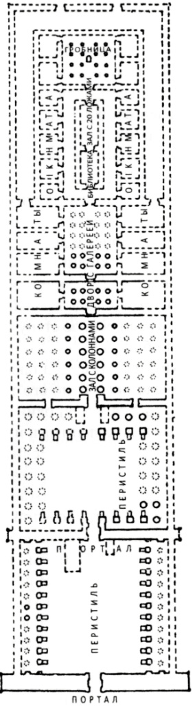 Рис. 1. Мавзолей Рамзеса в Фивах. Реконструкция на основе Диодора, по Жоллуа и Девильеру