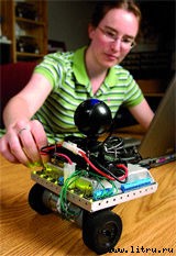 «Нас интересуют только роботы, нарушающие привычные представления о роботах», лукаво замечает глава группы разработчиков, профессор Илла Нурбахш (Illa Nourbakhsh). И впрямь, ассортимент уже прошедших полевые испытания моделей весьма широк: от напичканного сенсорами трехколесного сторожа помещений (на фото) до «цветика-шестицветика», способного наглядно показывать свое настроение и хватать брошенные ему предметы. Сейчас «терковцы» активно работают над интеллектуальной начинкой, способной «оживить»