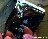 Пожалуй, самым дорогим подарком к нынешнему юбилею стала прогремевшая в Сети новость о том, что старина iPod пригоден не только для развлечений: при случае он способен даже сохранить жизнь своему хозяину. Доказательством тому служит серия появившихся на портале Flickr фотографий плеера с отверстием калибра 7,62. Как свидетельствует подпись, пострадавший от вражеской пули 20-гигабайтный гаджет принадлежит рядовому Кевину Гарраду (Kevin Garrad), отбывающему службу в Ираке. Во время рейда патруля Кевин завернул за угол жилого дома, где оказалась пара вооруженных «калашами» боевиков. Выстрел одного из них угодил в корпус находившегося на груди Кевина айпода, который тем самым «лег на амбразуру», спасая своего владельца. Падкие на сенсации акулы пера тут же разнесли по новостным лентам весть об «ангеле-хранителе от Apple». Правда, редкая из таких статей обходилась без едких комментариев скептиков, не верящих в то, что пластмассового корпуса и электронной начинки хватило, чтобы задержать пулю. Увы, рассказанное и впрямь оказалось «слишком хорошо, чтобы быть правдой»: когда пущенная в глаза читателей пыль улеглась, выяснилось, что своим чудесным спасением Кевин обязан бронежилету, а плеер лишь снизил убойную силу пули.