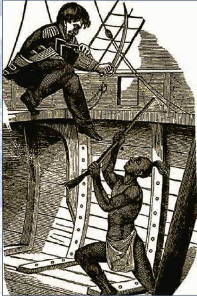 «Когда буканьеры захватывают приз, продолжает Эксквемелен, то в первую очередь высаживают пленников, оставляя себе лишь немного рабов для обслуги и освобождая их через 2-3 года. Часто они заходят на острова, чинят свои корабли. Некоторые в это время охотятся, а кто-то выходит в море на каноэ в поисках удачи. Иногда буканьеры нападают на бедных ловцов черепах и захватывают их в плен, увозя в свои поселения для работы».