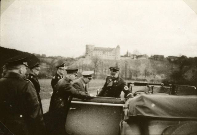 Гиммлер и рейхсляйтер Роберт Лей на фоне замка Вевельсбург, 1937 г.