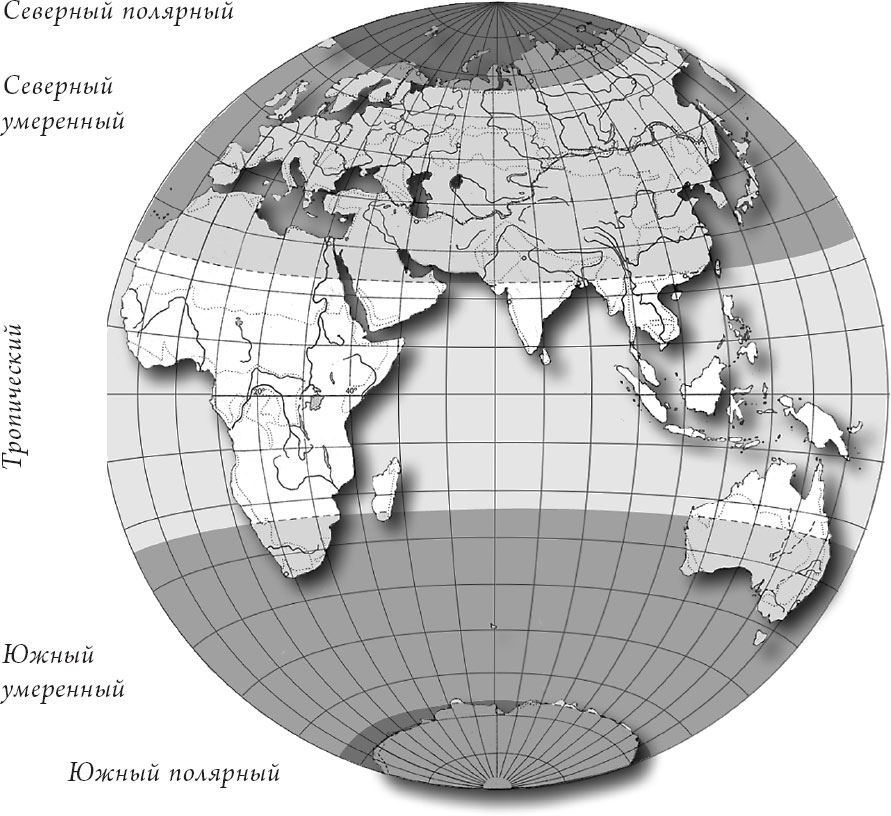 Карта поясов освещенности Земли. Восточное полушарие